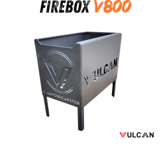 firebox todo em aço carbono chapa resistente de 3,2 milimetros nas dimensoes de 21cm largura, 37cm comprimento e 36cm altura.