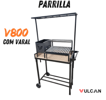 Parrilla v800 c/ varal toda construida em aço carbono inclusive grelhas, dimensao da bandeja de refratarios, largura 47cm comprimento 82cm