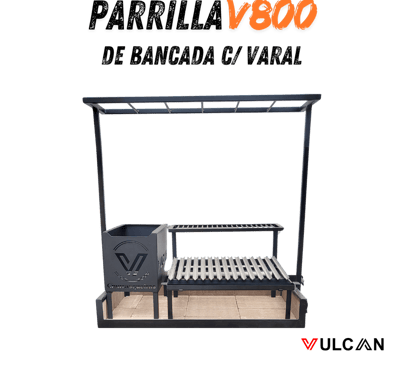 Parrilla v800 de bancada com varal toda construida em aço carbono inclusive grelhas, dimensao da bandeja de refratarios, largura 47cm comprimento 82cm, com revestimento de lã de ceramica.